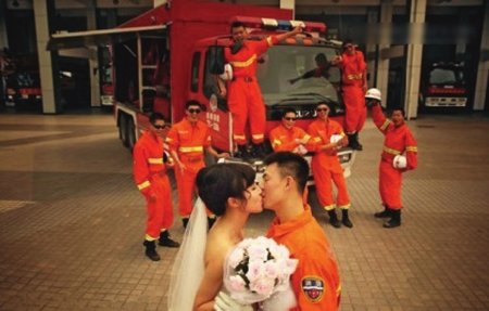 5月,拍照现场,战友全副武装当背景。5月,新人拍婚纱照,搜救犬来凑热闹。一组婚纱照被放上微博不到一天,转发量过万,什么样的婚纱照让如此多的网友感兴趣?一堵红墙、三五个汉子、一束捧花...